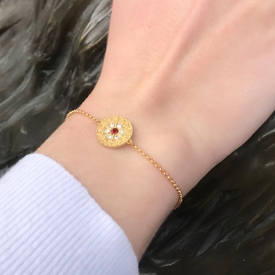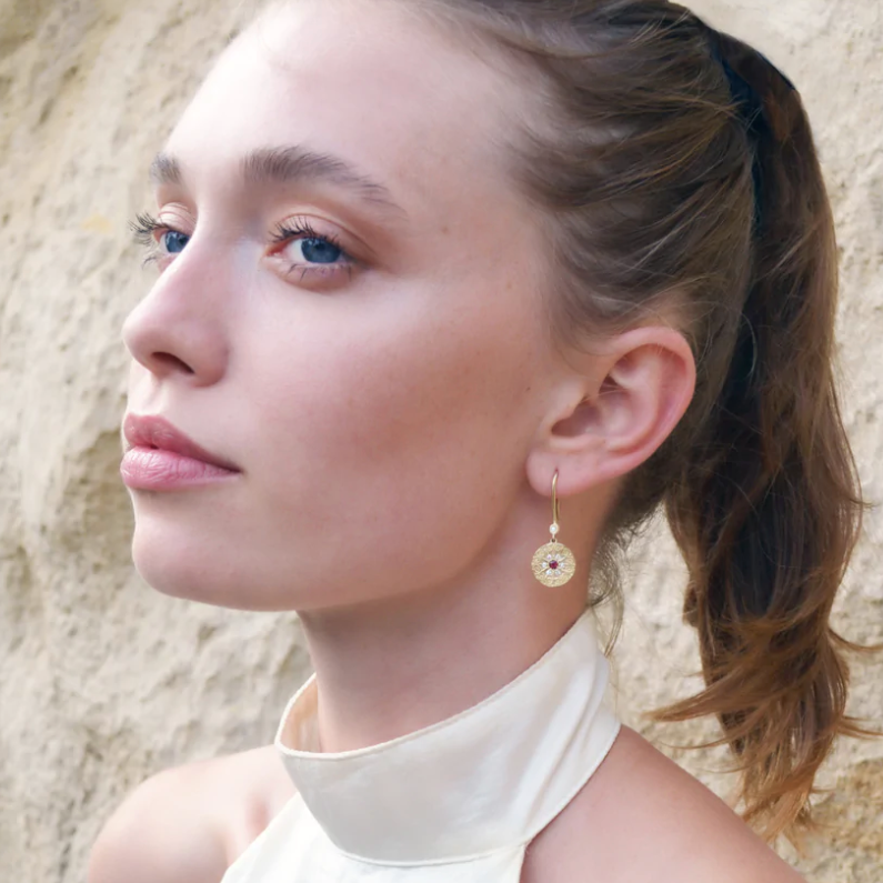 Inspired by Spain’s intricate metalwork and architecture, our 14k gold medallion jewelry...