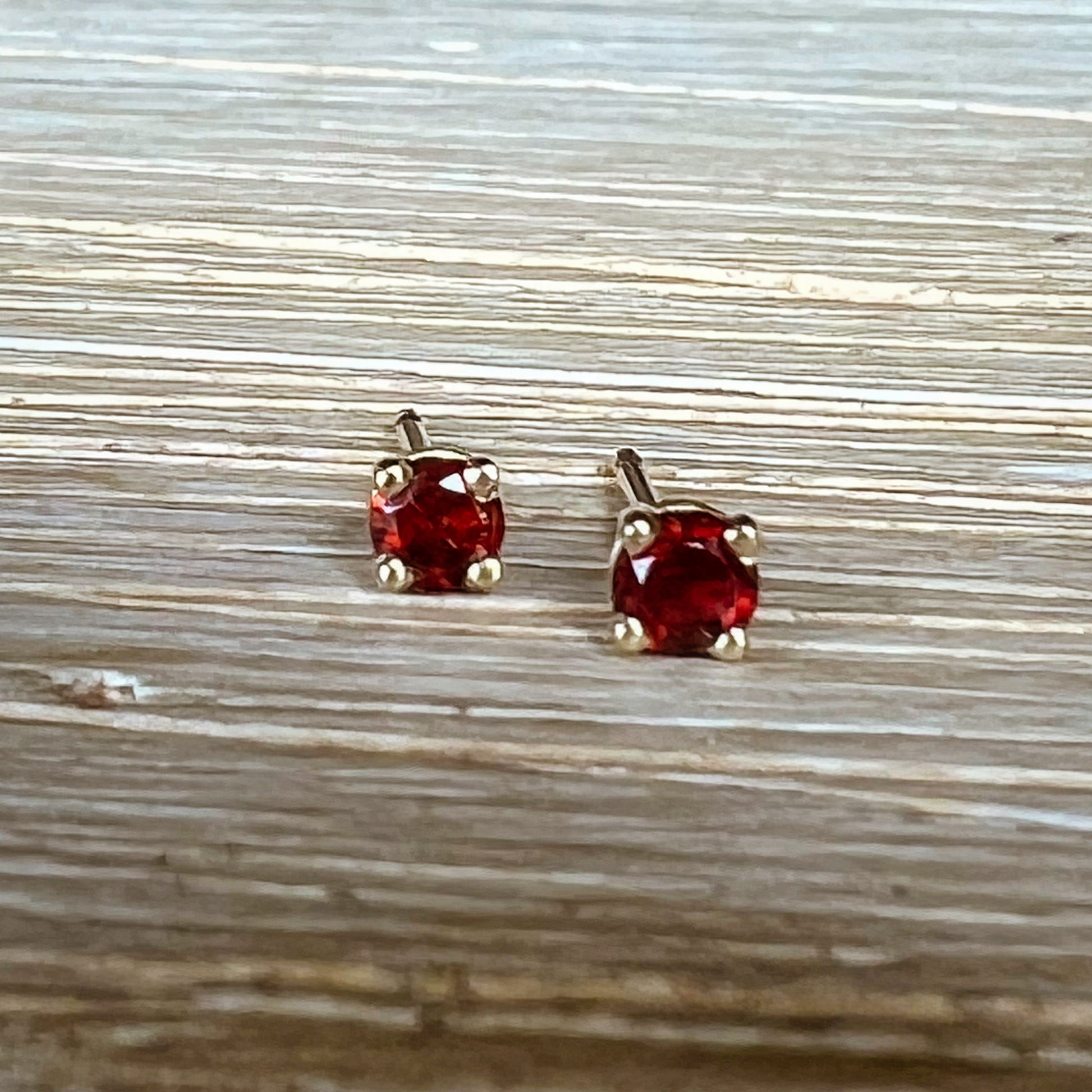 These garnet stud earrings set in gold are simple and timeless. Great for everyday wear!