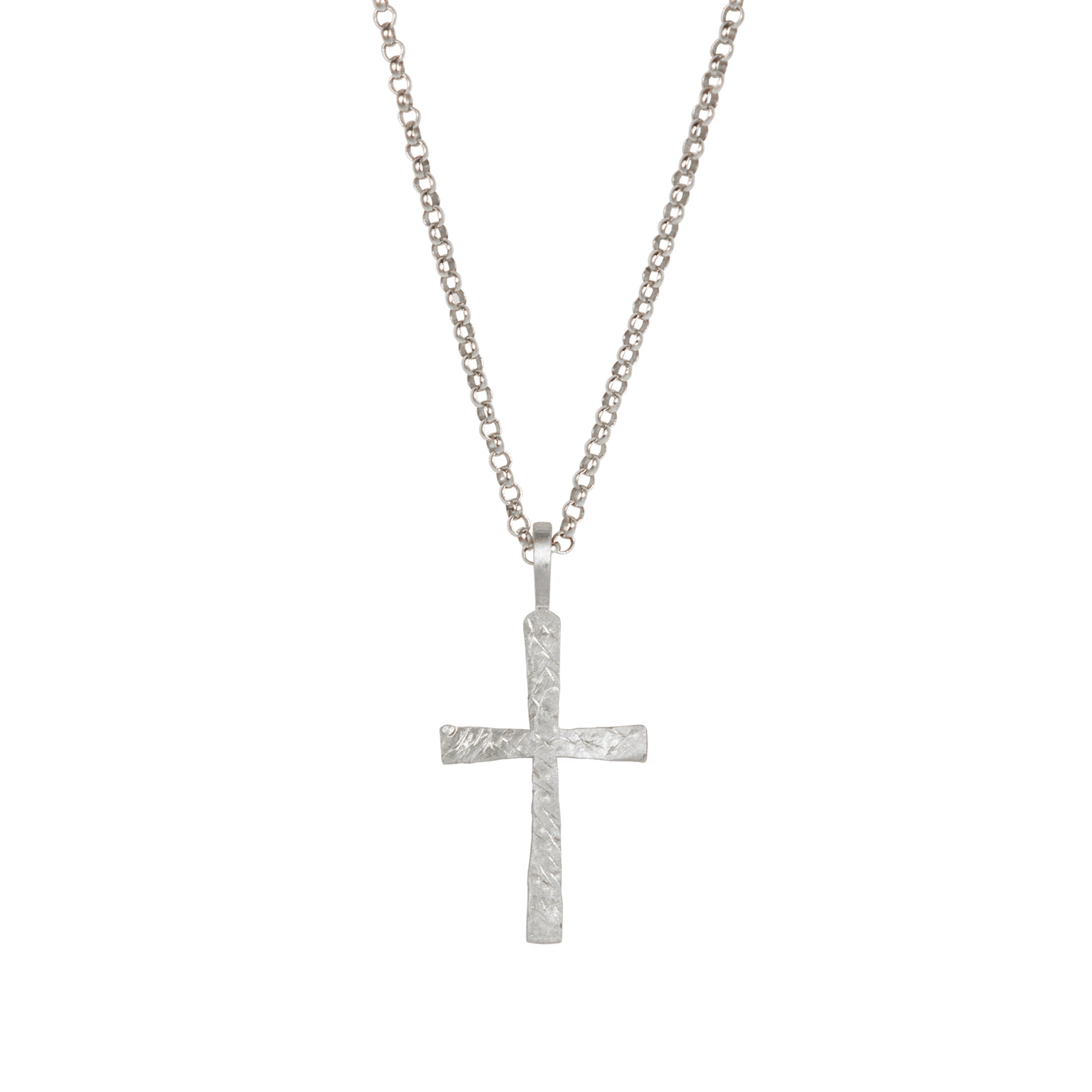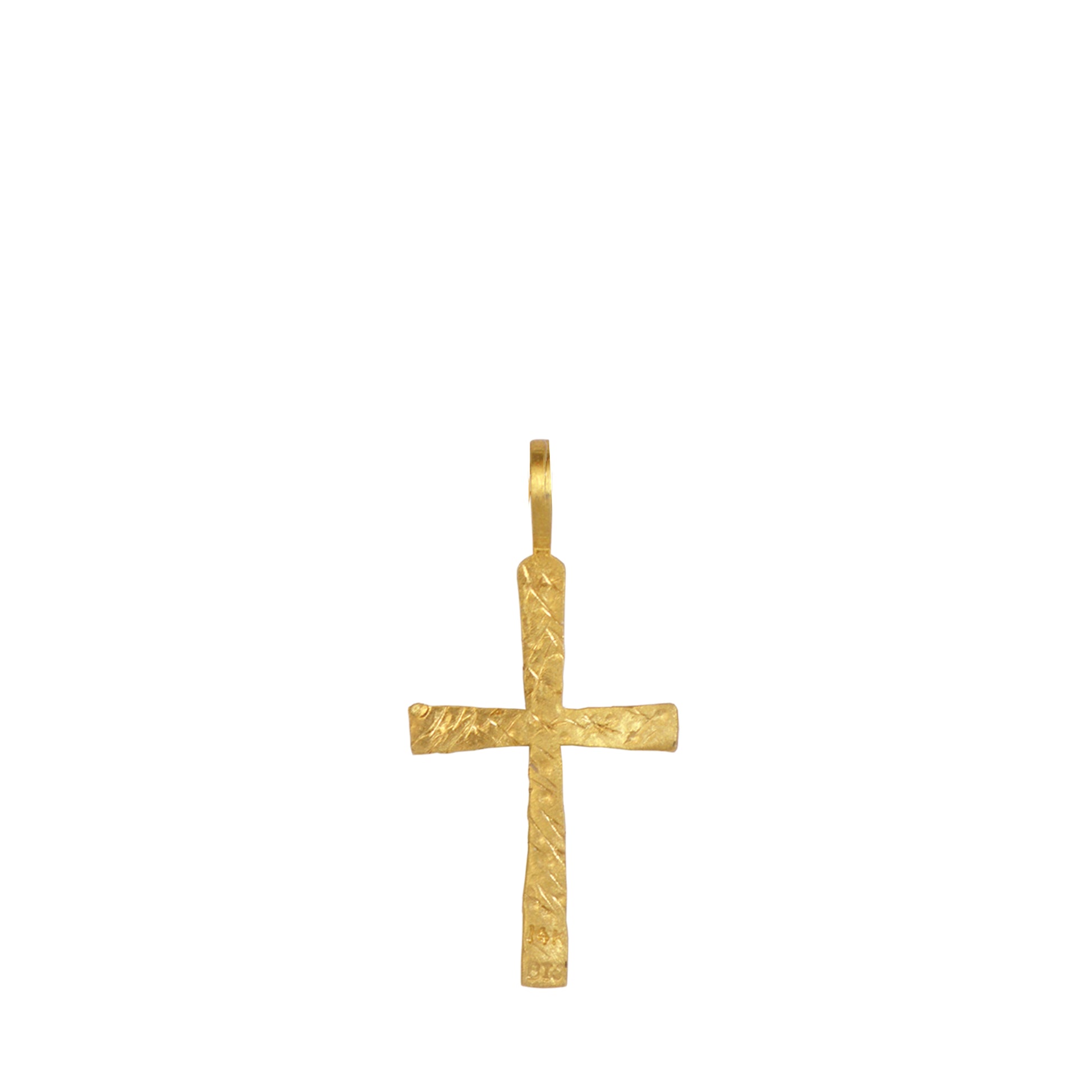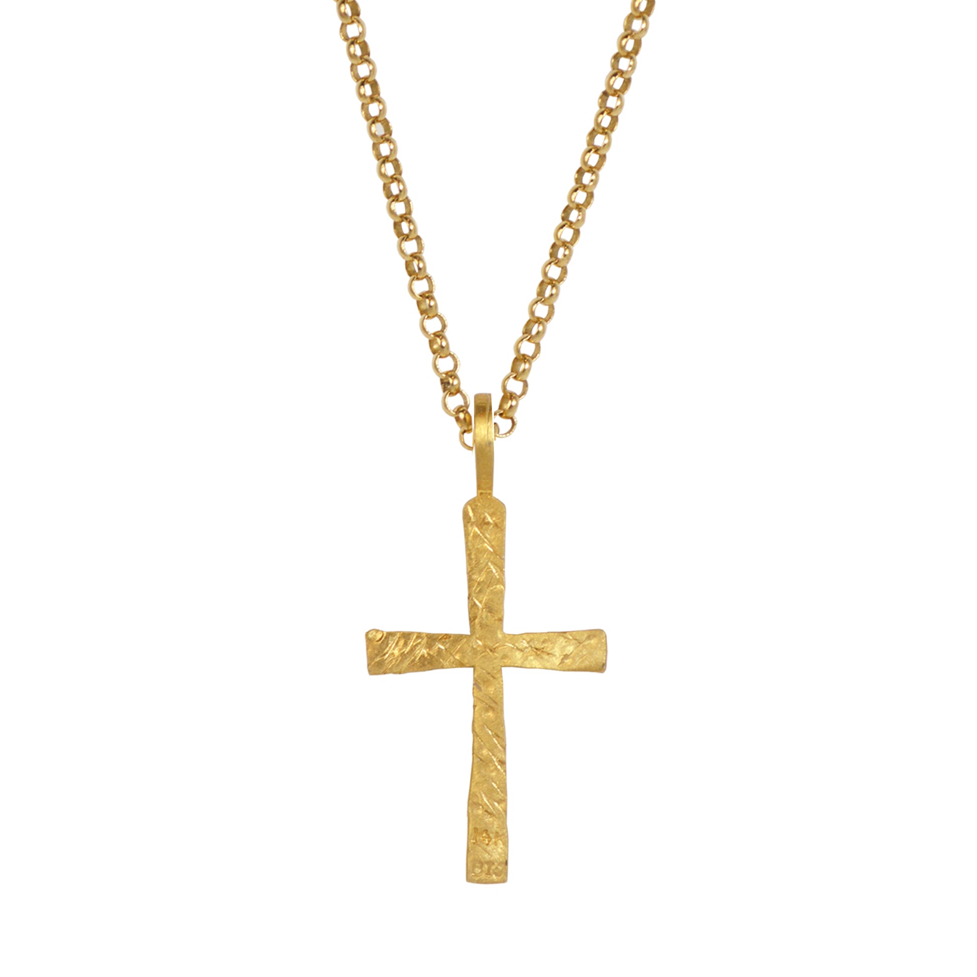 This rustic 14k gold cross is timeless with its simple design and Old World finish. Each cross is made to order and is hand finished.